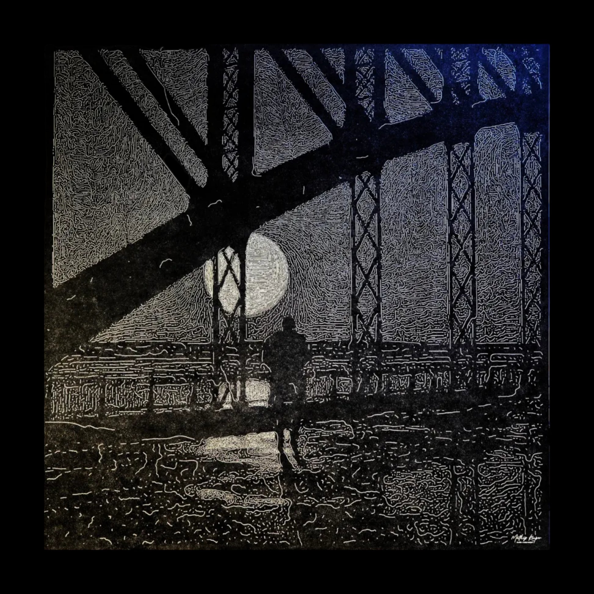 "There When You Need Me" is een houtgravure uit de collectie Silent Streets, waarin verlaten stadsgezichten worden vastgelegd, omhuld door een nachtelijke sfeer en eenzaamheid. Elk werk toont een enkele figuur, verloren in de leegte van de stad, gevangen in een moment van introspectie en isolatie.